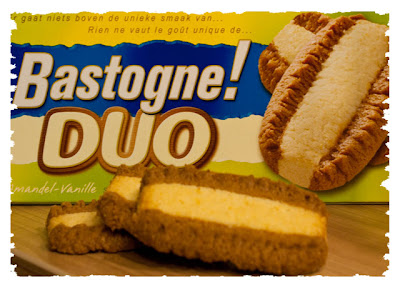 Varieties: Bastogne original is marketed in a yellow and blue box. The original version has now been joined on the shelves by Bastogne Due, an almond and vanilla flavoured option. Bastogne Duo is found in a green, blue and white box.